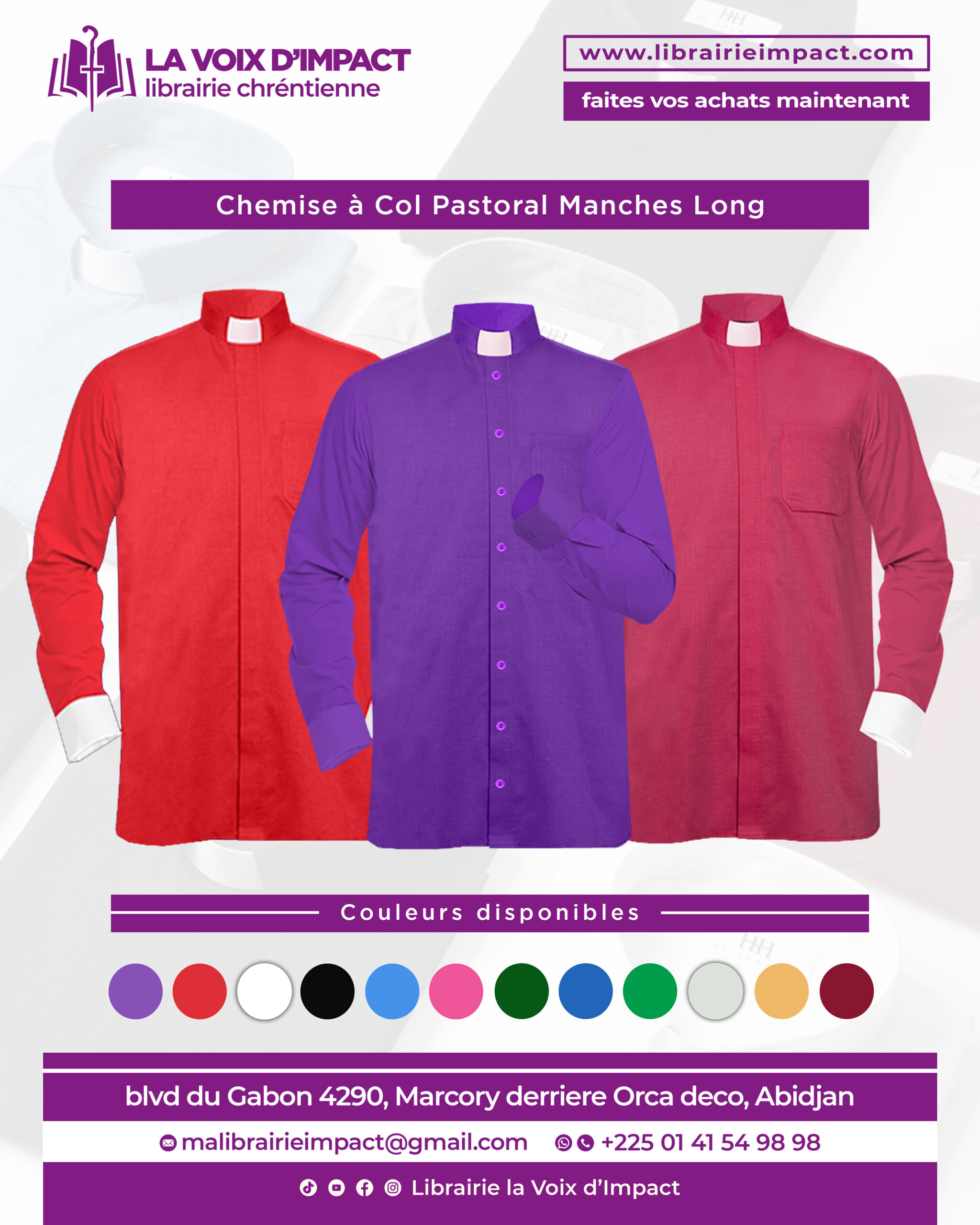 Élevez votre ministère avec nos chemises pastorales de qualité supérieure. Conçues pour allier confort, élégance et professionnalisme, nos chemises à manches courtes et longues sont parfaites pour tous vos services, réunions ou occasions officielles.