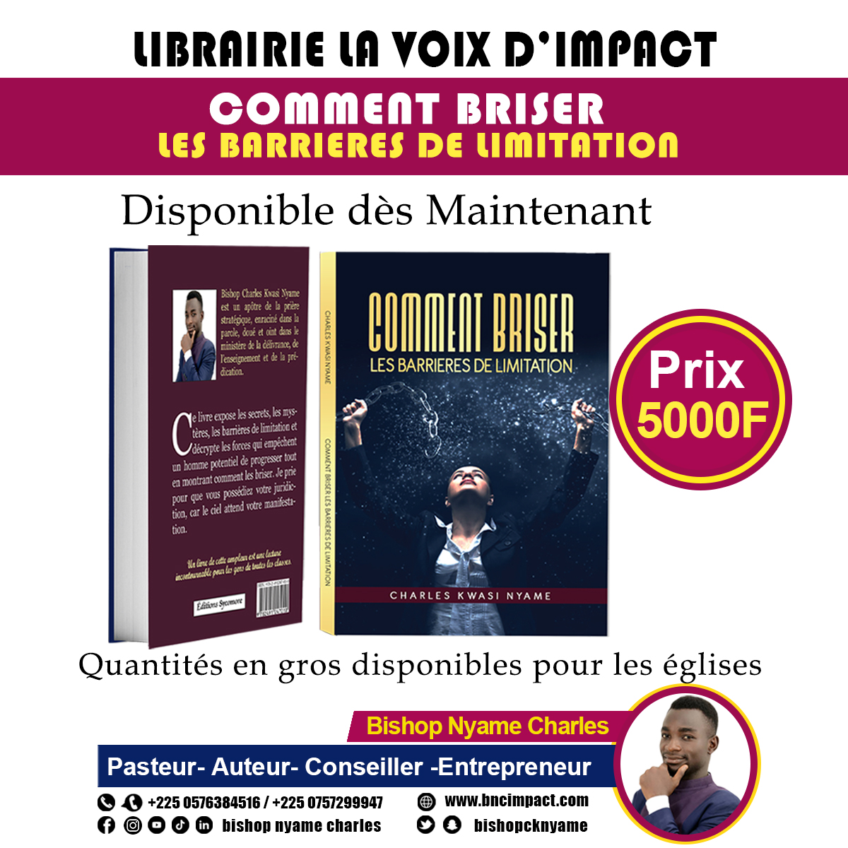 A PROPOS DE L’AUTEUR:                                                                                                                                                                                                                                                                                    Bishop Charles Kwasi Nyame est un apôtre de la prière stratégique, enraciné dans la parole, doué et oint dans le ministère de la délivrance, de l’enseignement et de la prédication.
